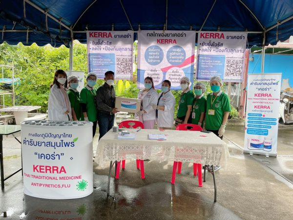 ดร.ภัทร์ หนังสือ ประธานกรรมการเวชกรโอสถ ได้มอบหมายให้ ทีมแพทย์แผนไทยลงพื้นที่ “ชุมชนซอยพัชราภา” เขตหลักสี่ กรุงเทพมหานคร ซึ่งในวันนี้ได้ตั้งจุดคัดกรองตรวจหาเชื้อ Covid-19 ให้กับพี่น้องชาวชุมชนในหลายชุมชน หลายพื้นที่ของเขตหลักสี่ที่ได้มาตรวจคัดกรองหาเชื้อ Covid-19(ฟรี) ณ ซอยพัชราภา 70 โดยเริ่มตรวจตั้งแต่เวลา 09.30 น. เป็นต้นไป ทางดร.ภัทร์ หนังสือ และทีมแพทย์แผนไทยได้ให้การช่วยเหลือในการนำยาเคอร่ามาแจก ให้กับพี่น้องประชาชนในพื้นที่ที่มาตรวจแล้วพบเชื้อ Covid-19 แล้วจะได้มอบยาเคอร่าไปให้รักษากันต่อที่บ้าน ตลอดจนแจกจ่ายยาเพิ่มเติมให้กับครอบครัวที่เป็นกลุ่มเสี่ยงเอายาไปรับประทานเพื่อป้องกันการติดเชื้อด้วย ทั้งนี้ในช่วงบ่ายวันเดียวกันนี้ ได้นำสมุนไพรยาเคอร่า ลงมอบให้อาสาตำรวจบ้านตำรวจชุมชน และอปพร.เขตหลักสี่ที่อยู่ด่านหน้าช่วยงานสังคมชุมชนด้วยเช่นกัน