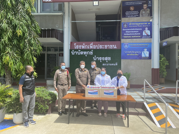 พท.กมลพัชร เงินขาว ตำแหน่งแพทย์แผนไทย เป็นตัวแทน ดร.ภัทร์ หนังสือ ประธานกรรมการบริษัทอีสเทิร์นเฮิร์บ และเวชกรโอสถ พร้อมคณะพ.ต.อ.เผด็จ ภู่บุบผากาญจน ผกก.สภ.อัมพวาได้ร่วมกันนำยาลดไข้ ต้านไวรัส KERRA มามอบให้แก่ข้าราชการตำรวจ สภ.บางคนที พร้อมครอบครัว เพื่อเป็นขวัญและกำลังใจแก่ข้าราชการตำรวจทุกนาย โดยมีพ.ต.ท.ชัยยศ เหล่ามัง รองผกก.ป.สภ.บางคนที เป็นตัวแทนรับมอบและรับฟังวิธีการใช้ยาที่ถูกต้องบริเวณหน้าที่ทำการสภ.บางคนที