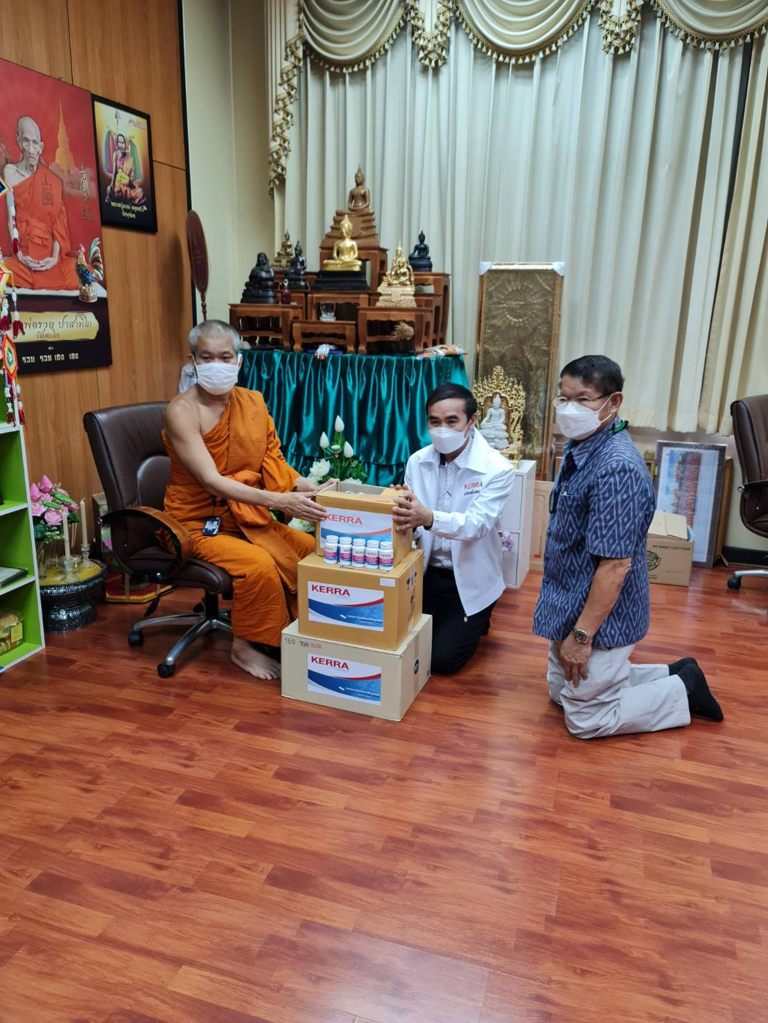 ดร.ภัทร์ หนังสือ ประธานกรรมการเวชกรโอสถ และทีมแพทย์แผนไทย ได้เดินทางไปที่ “มหาวิทยาลัยมหาจุฬาลงกรณราชวิทยาลัย” จังหวัดพระนครศรีอยุธยาเพื่อนำยา KERRA จำนวน 300 กระปุก ถวายให้พระเมธีธรรมมาจารย์ รศ.ดร.รองอธิบดีฝ่ายวางแผนและพัฒนา กรรมการและเลขานุการมหาวิทยาลัยมหาจุฬาลงกรณราชวิทยาลัย เพื่อนำยา KERRA ไปถวายต่อให้กับพระเถรานุเถระตลอดจนพระภิกษุสามเณรไว้ป้องกันยับยั้งเชื้อไวรัส Covid-19