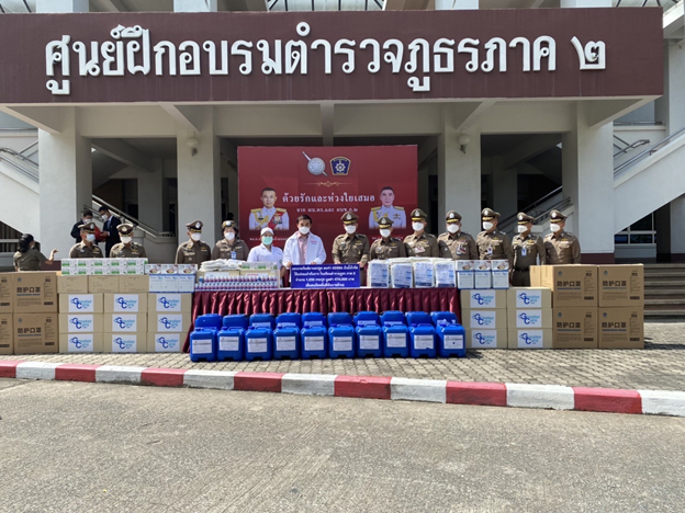 พลตำรวจโท ธิติแสงสว่าง ผู้บัญชาการตำรวจภูธรภาค 2 พลตำรวจตรีสุรจิต ชิงนวรรณ์ พลตำรวจตรีชัยพจน์ สุวรรณรักษ์ รอง ผบชภ. 2 เป็นประธานในพิธีรับมอบยาสมุนไพรเคอร่า จากดร.ภัทร์ หนังสือ ประธานกรรมการเวชกรโอสถ เพื่อใช้ในสถานการณ์การแพร่ระบาดของ Covid-19 สำหรับเจ้าหน้าที่ตำรวจในตำรวจภูธรภาค 2 และโรงเรียนตำรวจภูธร 2 ต่อไป