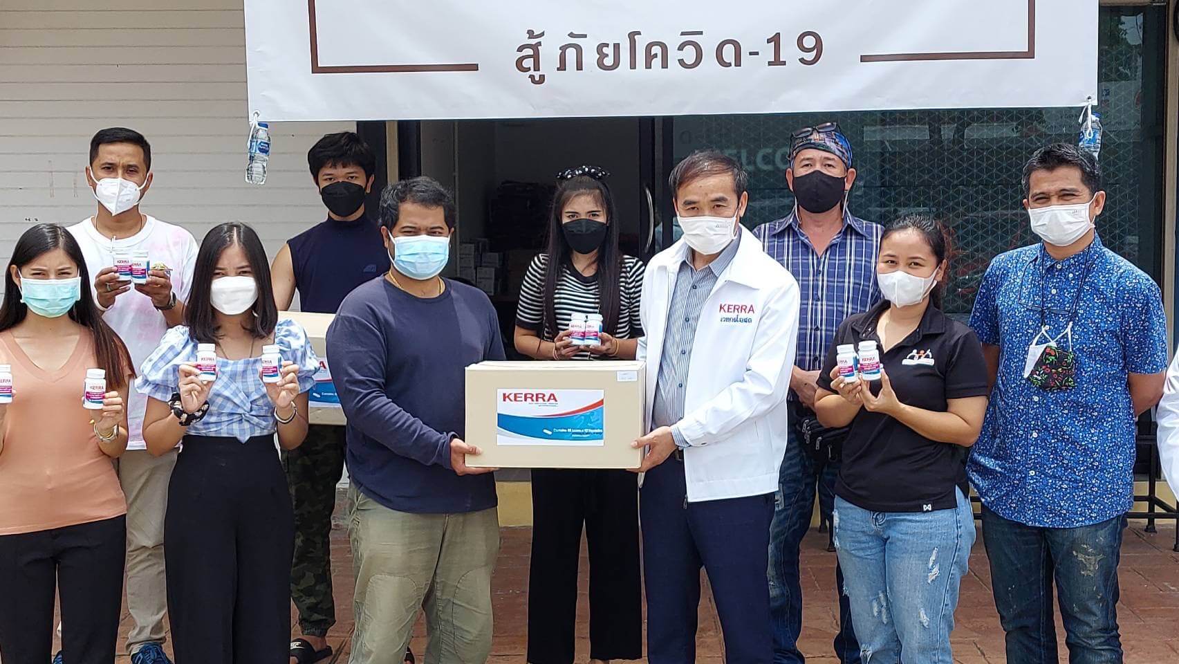 ดร.ภัทร์ หนังสือ ประธานกรรมการเวชกรโอสถ นำยาเคอร่ามอบให้ศูนย์ประสานงานโครงการราม-ไม่ทิ้งกัน โดยมีคุณนิชนันท์ สุวรรณมณี ตัวแทนนักศึกษาและจิตอาสา ซึ่งเรียนอยู่ที่มหาวิทยาลัยรามคำแหงพร้อมทีมงาน เป็นผู้รับมอบ โดยตัวคุณนิชนันท์ ได้ป่วยเชื้อ Covid-19 เมื่อเดือนสิงหาคม 2564 ที่ผ่านมา โดยก่อนหน้ารับประทานฟ้าทะลายโจร 3 วันแล้วแต่เชื้อลงปอด วันต่อมาได้รับประทานยาเคอร่าแล้วอาการดีขึ้นจนหายในที่สุด ซึ่งศูนย์ประสานงานโครงการราม-ไม่ทิ้งกัน จะได้นำยาเคอร่าไปมอบให้นักศึกษามหาวิทยาลัยรามคำแหงที่ติดเชื้อ Covid-19 รวมทั้งประชาชนในพื้นที่ใกล้เคียง เพื่อใช้รักษาอาการไข้ในสถานการณ์การแพร่ระบาดของเชื้อไวรัส Covid-19 ต่อไป